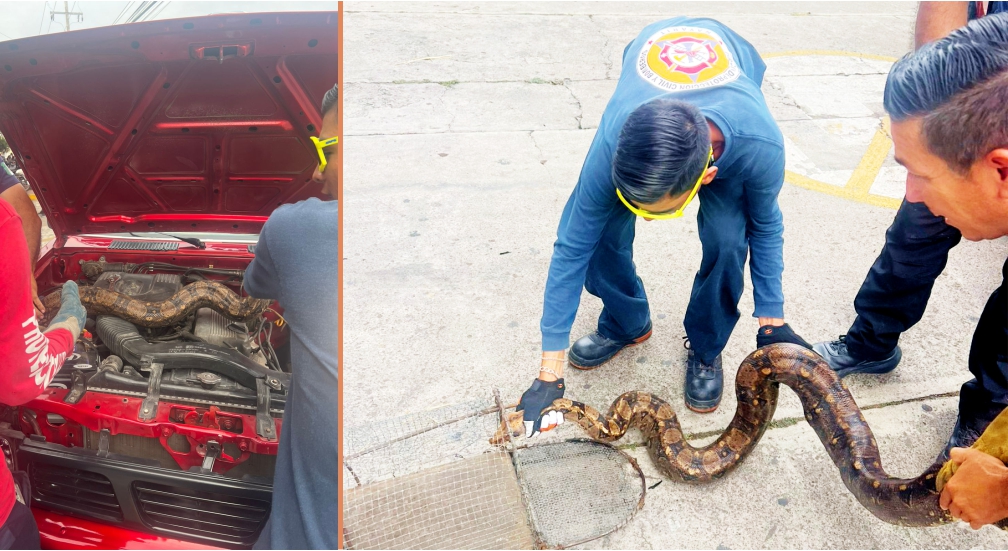 Bomberos del Estado rescatan y resguardan a una boa constrictor hallada dentro de un vehículo en Tepic