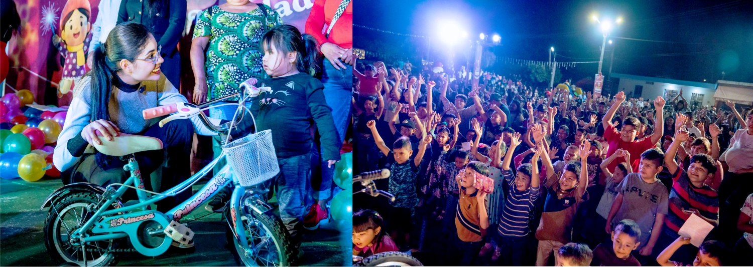 Durante el evento, la alcaldesa compartió con las familias regalos, bicicletas, tabletas y la ya tradicional lluvia de pelotas, que llenó de entusiasmo a niñas y niños que acudieron a la celebración.