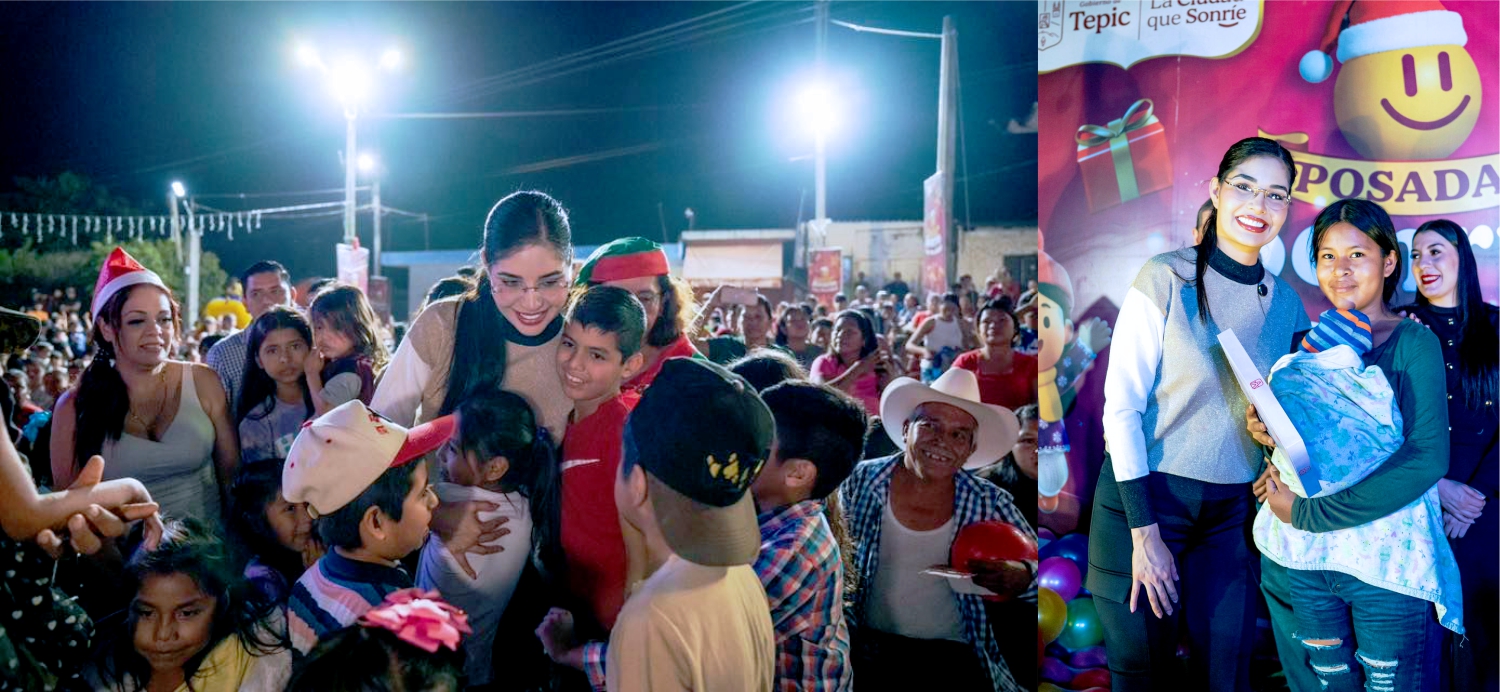 Sumario: La presidenta municipal de Tepic encabezó la décima Posada Sonríe Esta Navidad en la comunidad de El Jicote, donde niñas, niños y familias disfrutaron una tarde de regalos, juegos y espíritu navideño.