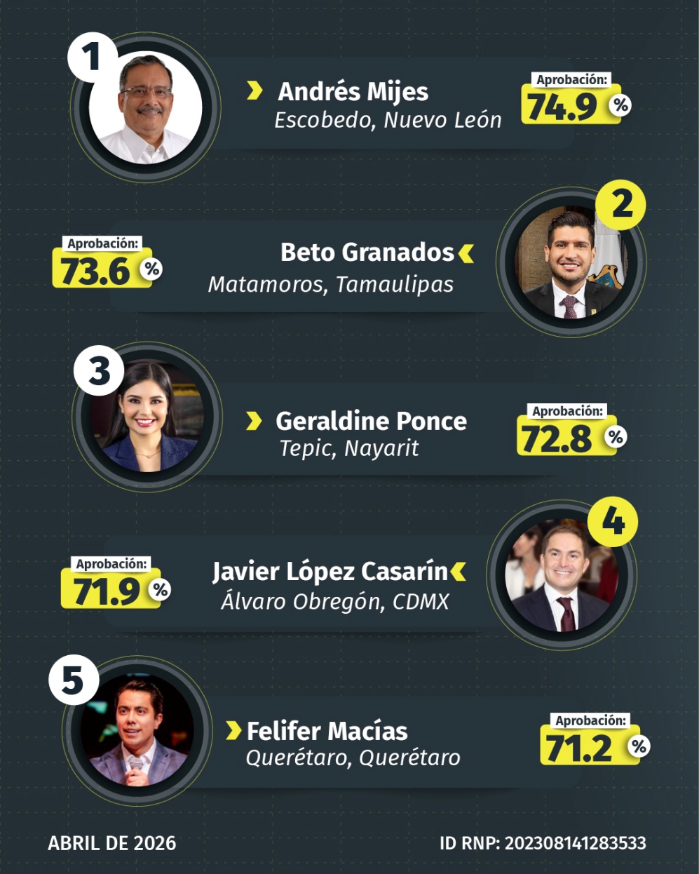 Los resultados de estas mediciones consolidan a Geraldine Ponce no solo como una de las alcaldesas mejor evaluadas a nivel nacional, sino también como el perfil morenista mejor posicionado en Nayarit.