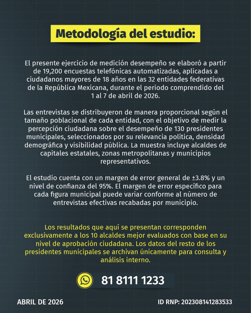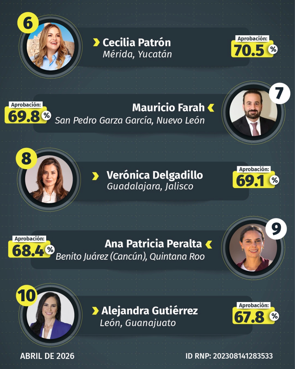 Tepic, Nayarit.— La más reciente medición de DatoMetría, correspondiente al mes de abril, coloca a la presidenta municipal de Tepic, Geraldine Ponce, como la tercera mejor alcaldesa del país, resultado que coincide con evaluaciones previas de Consulta Mitofsky y Rubrum.