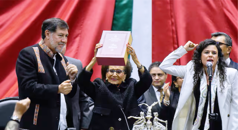 Así inició su intervención Luisa María Alcalde, secretaria de Gobernación, al entregar el paquete del sexto y último informe de gobierno del presidente Andrés Manuel López Obrador a Ifigenia Martínez, presidenta de la Cámara de Diputados, en la sesión del Congreso General.