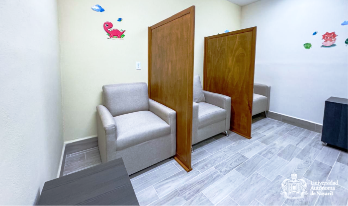 Guadalupe Armas Rodríguez, responsable de la Sala de Lactancia Universitaria detalló, que dicho espacio cuenta con un recibidor, área de cocineta donde la madre pueda extraer la leche de manera higiénica, área de consejería y tres cubículos separados cada uno con un sillón tipo reposet.