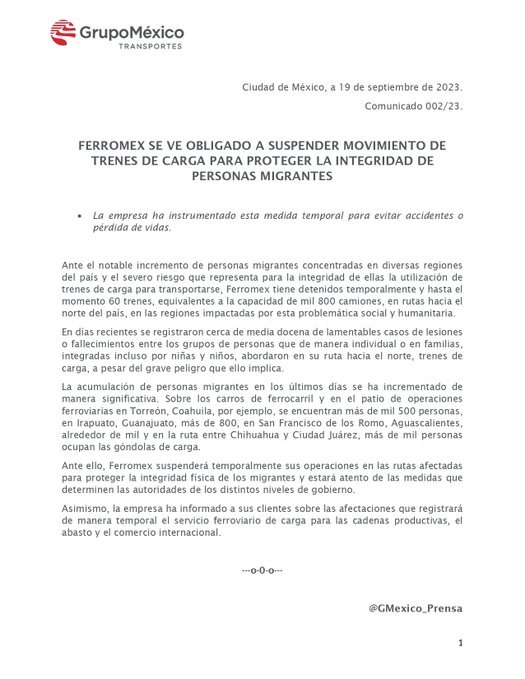 Y precisamente gracias a uno de estos grupos, se dio a conocer que al pasado 08 de este mes de febrero de 2024 sobre la detención de una tripulación de un tren denominado “Intermodal México-Mexicali” en el kilómetro T-261, al norte de Hermosillo, Sonora, debido a que en su tren se encontraron unos contenedores que en su interior viajaban muchas personas indocumentadas supuestamente de varias nacionalidades, siendo un tren que, debido a su carga tendría que ir custodiado por el área de protección ferroviaria para cuidar la carga, según lo establece el artículo 198 de la Ley Reglamentaria del Servicio Ferroviario.
